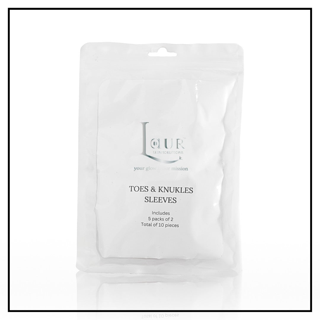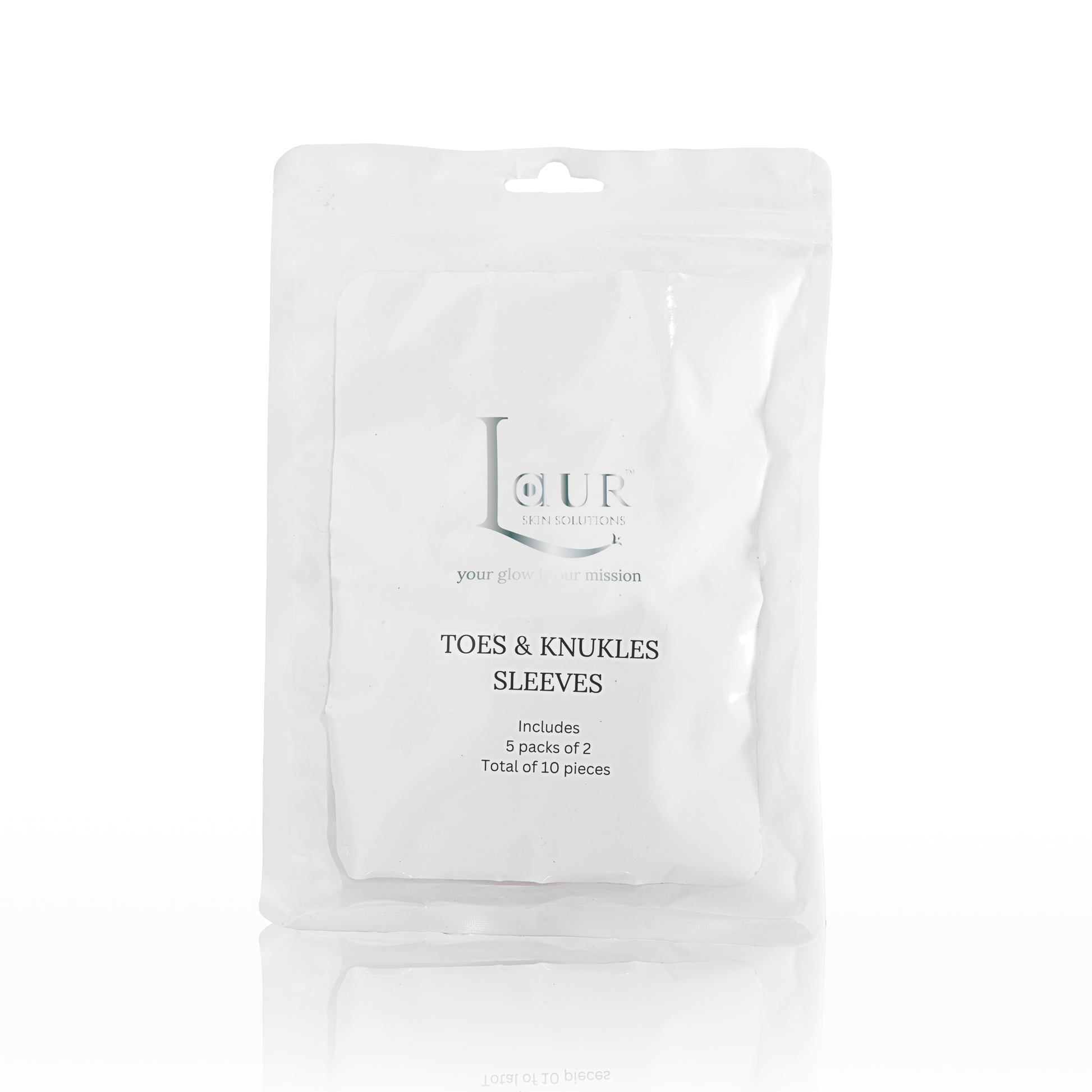 Use Laur's Toes & Knuckles Sleeves to keep creams focused on dark knuckles and toes when applying creams at night.